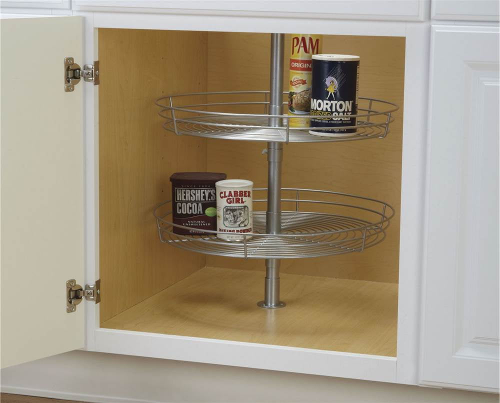 The susans are crafted to fit any cabinet and the high quality construction allows them to function with ease for years to come. Browse a wide selection of kitchen pantry organization ideas, including lazy susans, pull out shelves, cabinet organizers and storage for pantry doors. A lazy susan is a rotating tray, generally circular, that can be placed on a countertop or tabletop to make the dishes accessible to all the diners at the table. You'll need to record the measurements of your cabinet to ensure your lazy susan will fit properly. A lazy susan is type of rotary platform that fits within a kitchen cabinet, usually in corners.